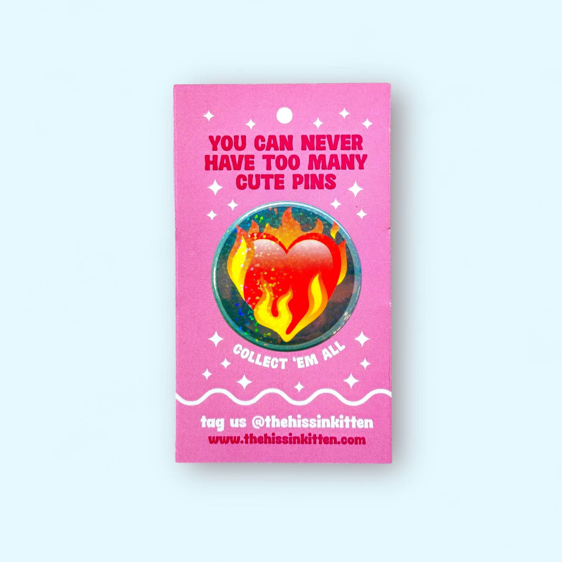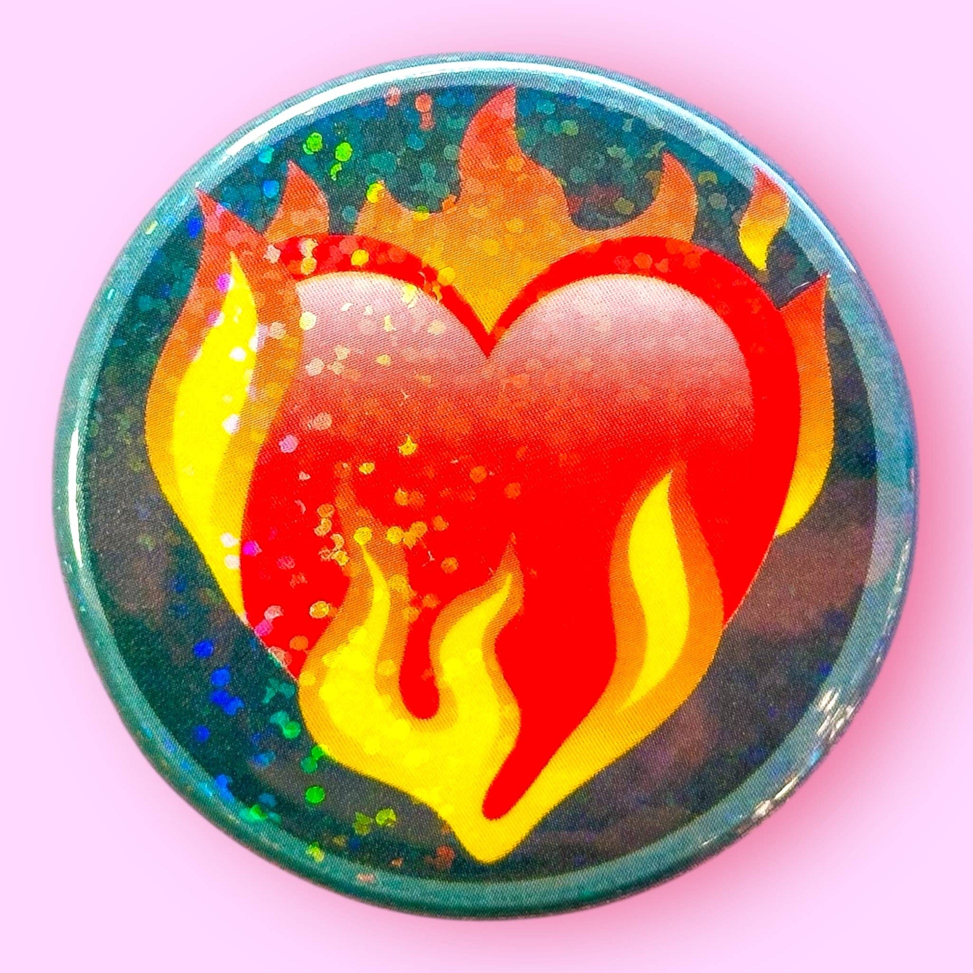 Flaming Heart - Taylor Swift - Glitter Button or Magnet