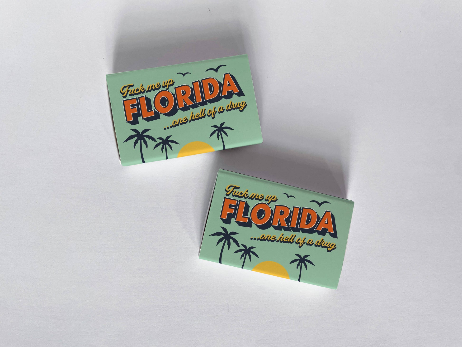 Perfect for gifting, event favors, or simply elevating your everyday coffee table aesthetic. This matchbook has lyrics from Taylor Swift's "Florida!" reading "Fuck me up Florida...one hell of a drug" with beach icons.