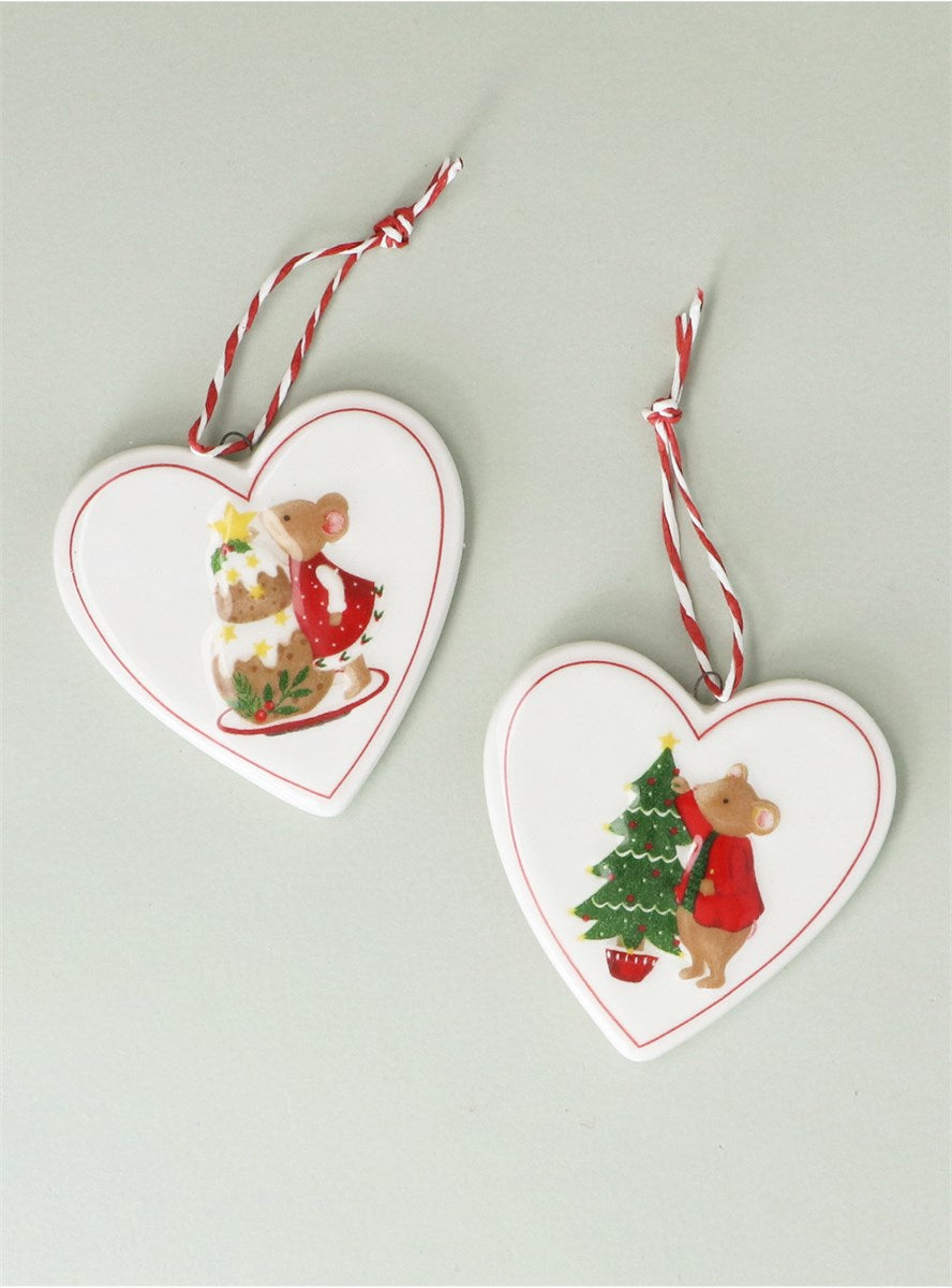 - A sweet pair of Holly & Alfie mice hearts hanging decorations