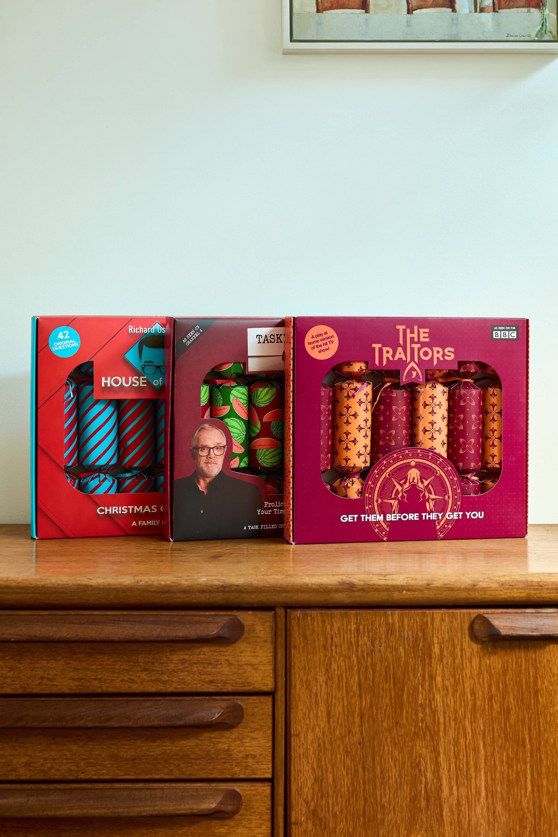 Get them before they get you.exclusive license to manufacture and sell Traitors Christmas Crackers. What's in the box? - 6 crackers each containing 1 Role card, 1 Gold token and 1 Mission card (plus a joke and a hat!). - 5 Spare Role Cards - 4 Spare Gold Tokens - 10 Armoury cards - 60-90 minutes - 3-10 players with additional materials inside. Perfect for: Christmas puzzle gifts, Festive crackers, Winter puzzle gifts, stocking filler gifts, family Christmas games, Christmas presents, eco-friendly gifting, Christmas table decorations, Christmas dinner accessories, Christmas parties, Secret Santa, novelty crackers, Christmas 2025, boardgames UK. Only available in the UK.