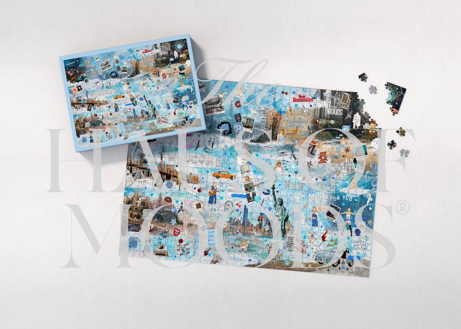 Step into the sparkling, high-energy world of 1989 with this Swiftie-approved jigsaw puzzle. The 1989 Lyrics & Easter Eggs Puzzle is a crisp, vibrant celebration of the era that redefined pop music — packed with hidden lyrics, clever Easter eggs, and visual winks just waiting to be uncovered.